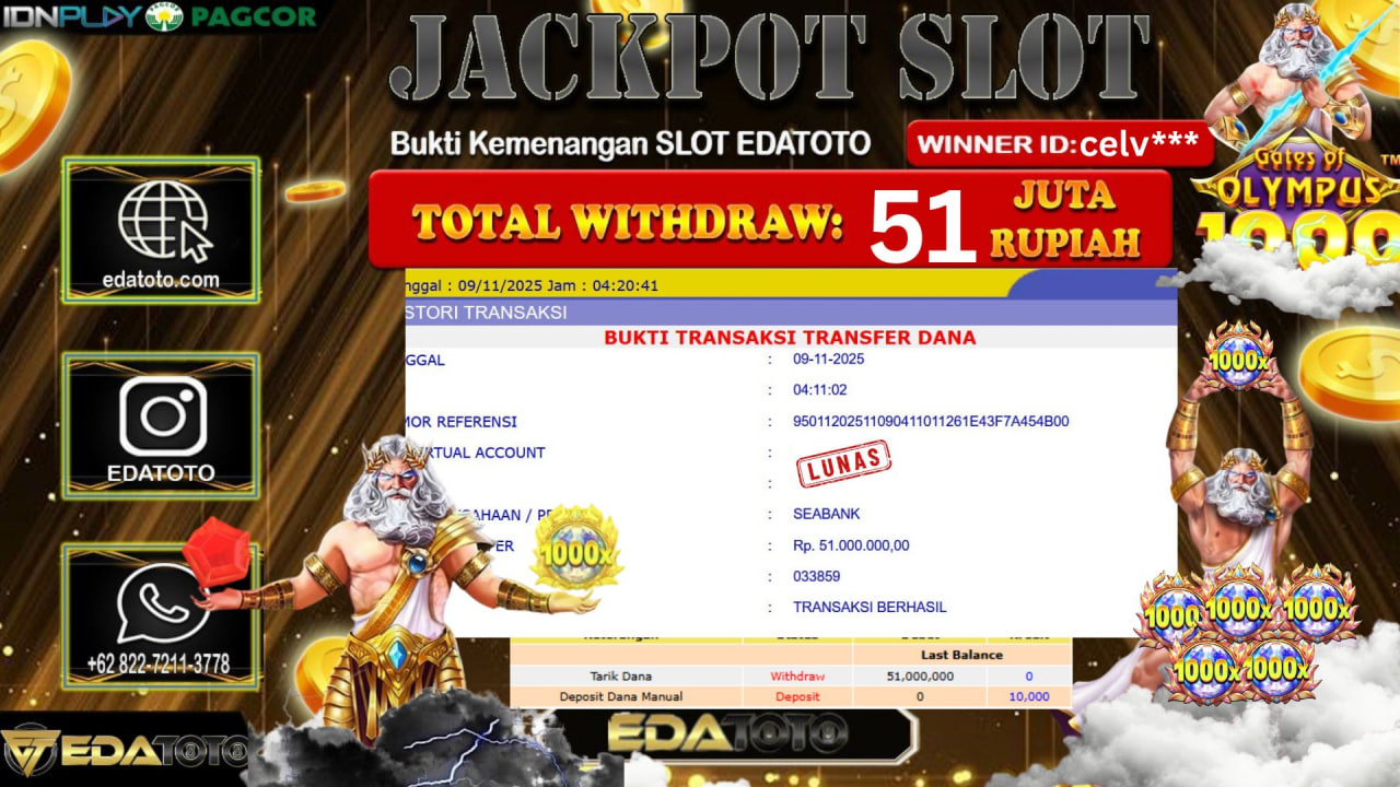 Selamat Kepada Pemilik user ID : celv*** Hari/Tanggal : JUMAT / 7, November 2025 Jackpot : Rp. 51,000,000 JT Withdraw :51,000,000 . . .
