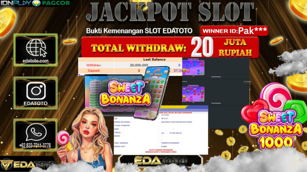 Selamat kepada member setia EDATOTO telah mendapatkan JP Bermain Di ; Sweet Bonanza 1000